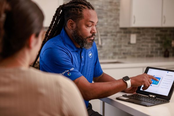 Rob walking a customer through ADT’s different products and security solutions during a customer appointment.
