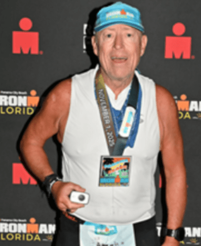Paul’s Ironman journey began long before race day. In preparation for his second Ironman in 2024, he logged 874 miles of running, 3,162 miles of cycling, and 141 miles of swimming. He trained through storms, curfews, and even the loss of his home and car when Anna Maria Island was hit with 2 hurricanes just weeks before the race. Despite setbacks, he adapted and kept moving forward.